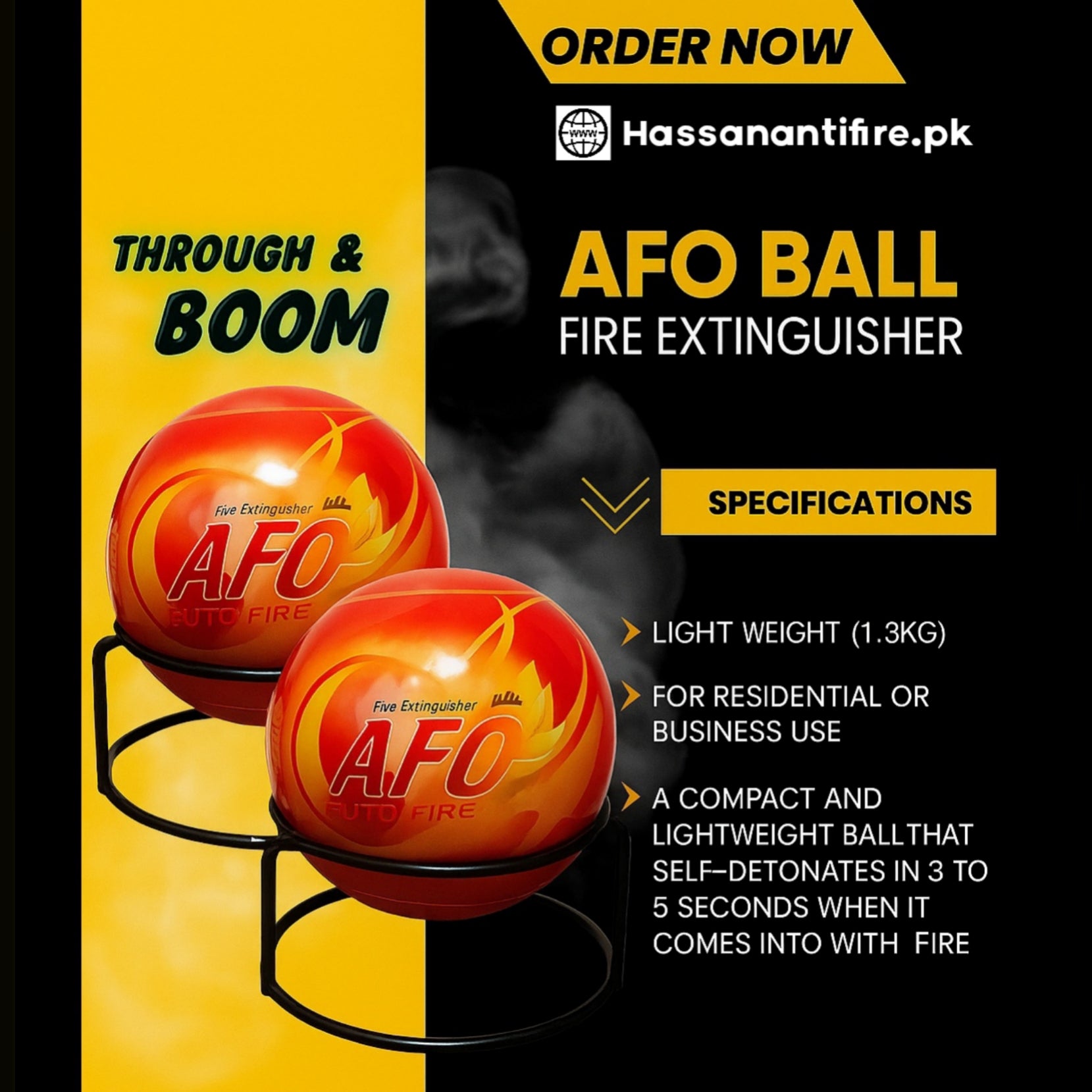 Automatic Activation: No pin, no trigger. The fireball activates when it comes into contact with flames (within 3–5 seconds).
